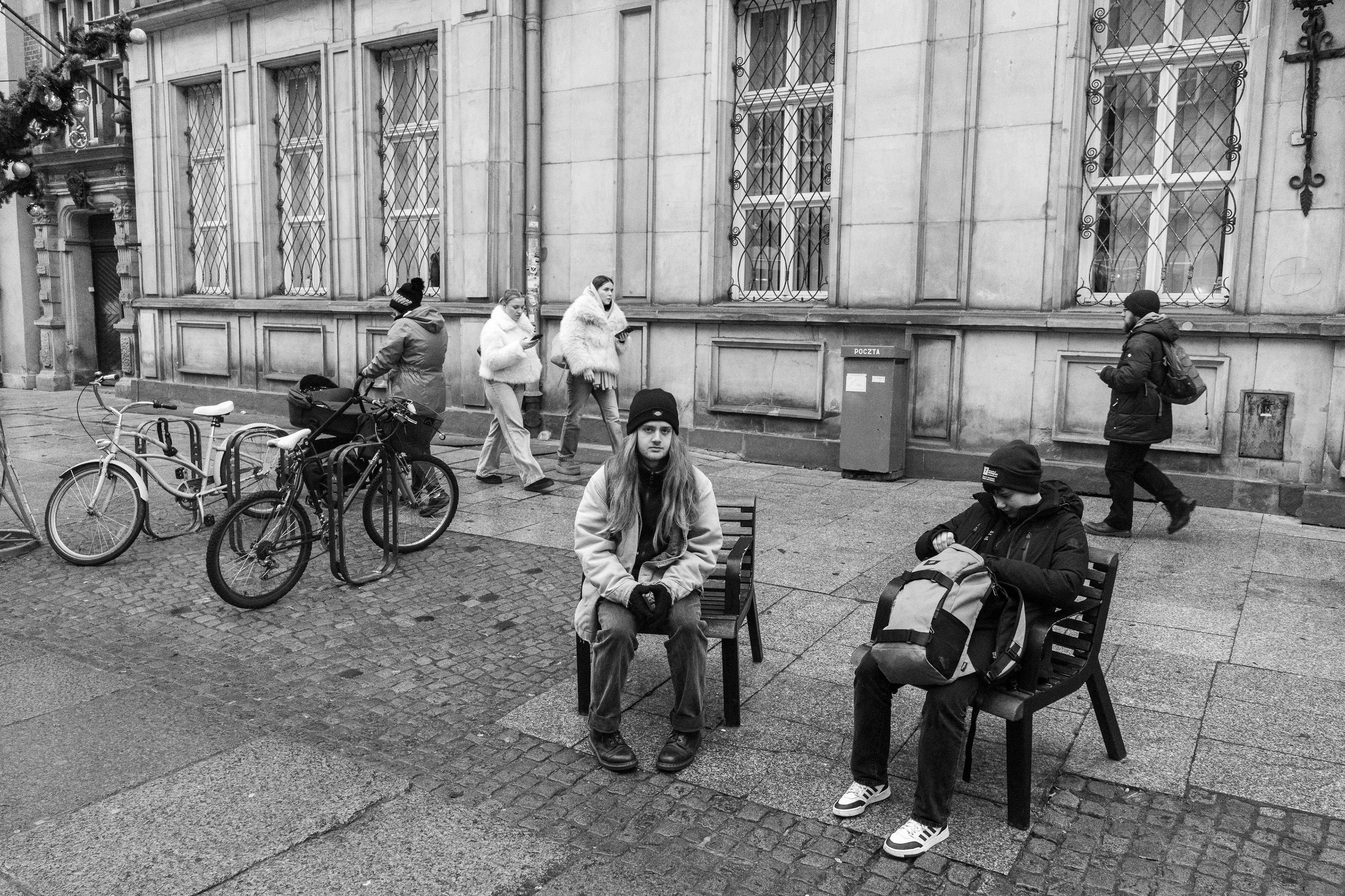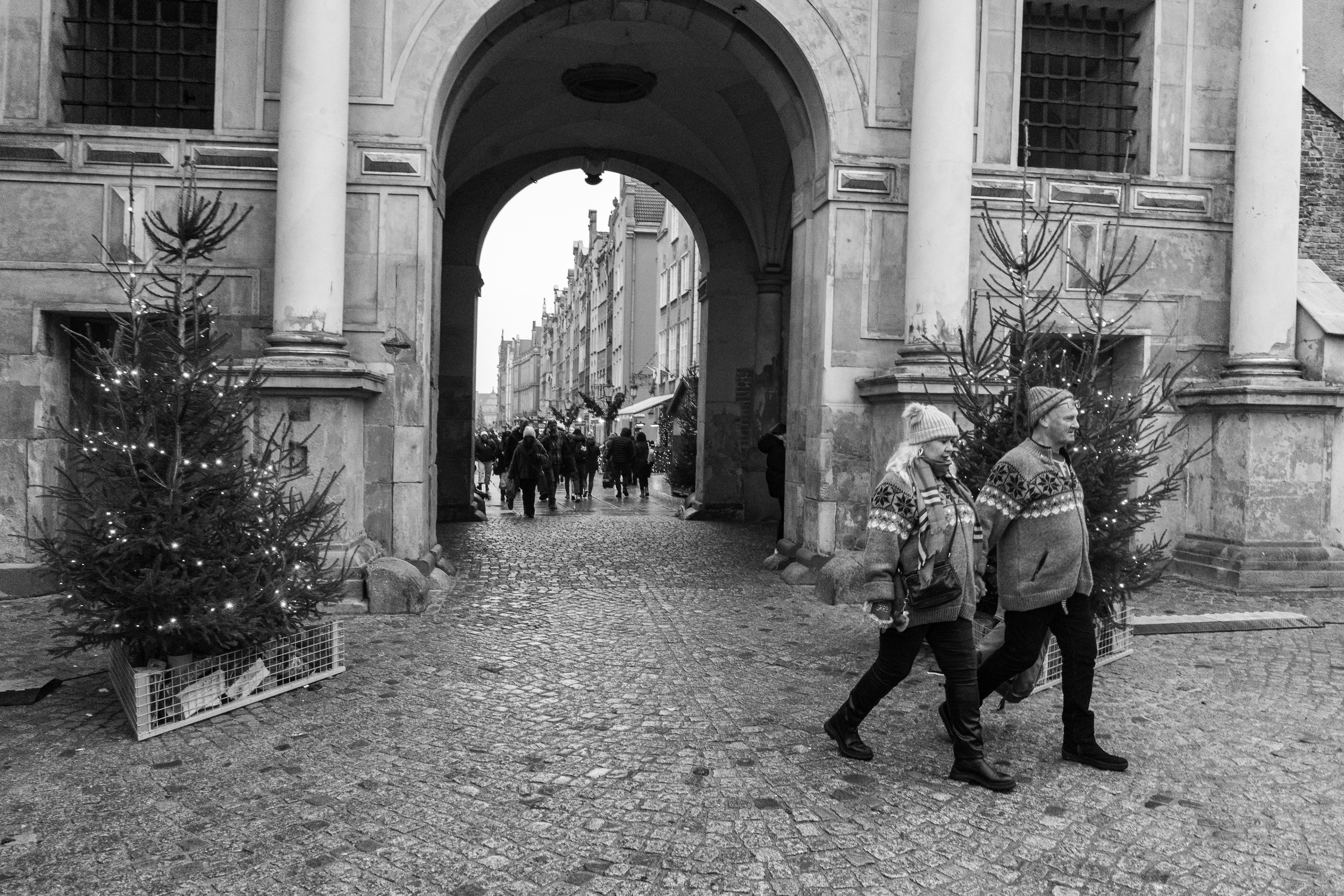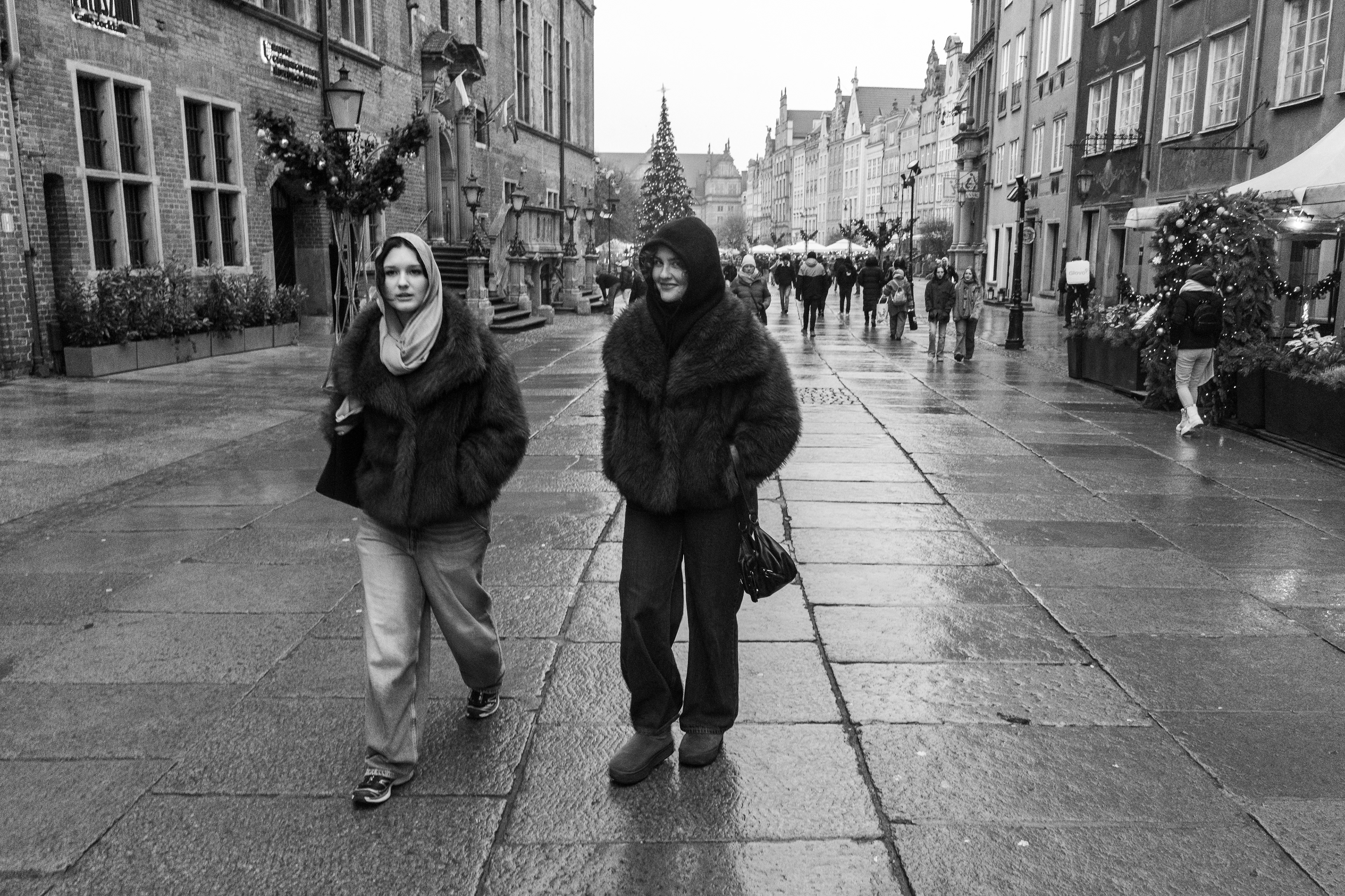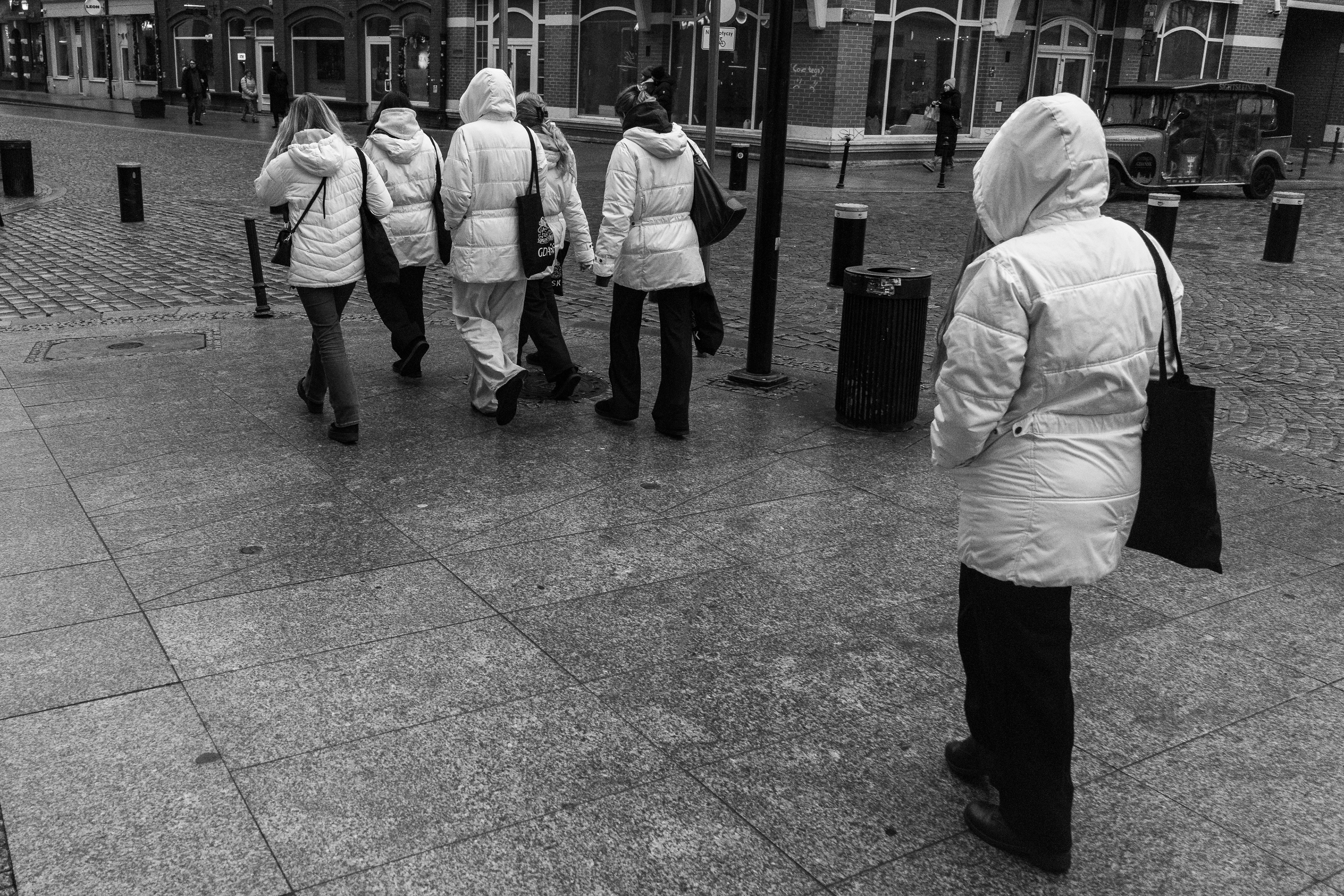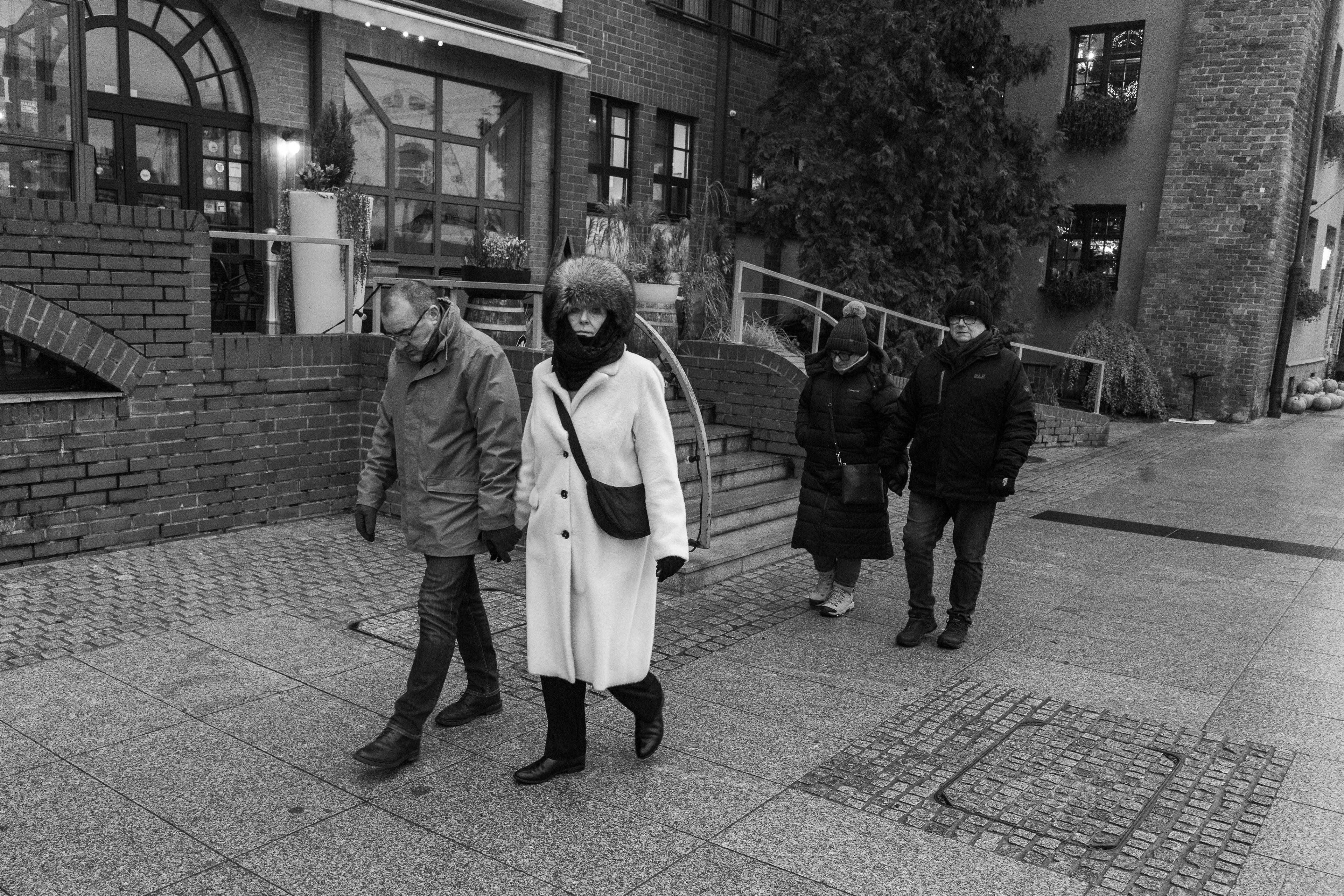 People march through the cold in pairs or whole packs, like the Matrix pushed a “move as a unit” update.